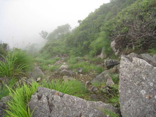 今度は雨の中、四つん這いで岩肌を降り、滑り易い野道をひたすら下山(;_;)