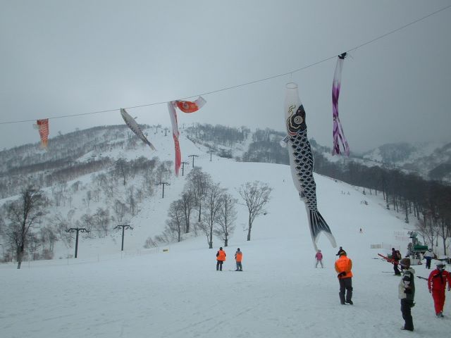 このスキー場には本当に驚かされました。今日一日雪が降っていました。積雪もまだまだ十分で、ゴールデンウィークは文句なく滑れそうです。今年暖冬少雪に泣かされた私たちには羨ましい限りです。平日でゲレンデも空いていたので、思う存分滑る事も出来ました。