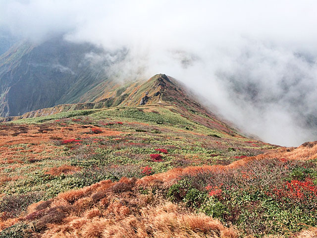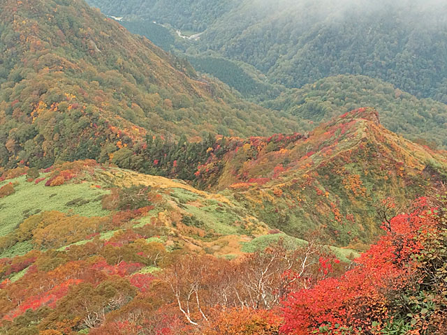 やや紅葉のピークは過ぎた感じでしたが、時折モヤが消えて見せる雄大な縦走路は今年も健在⛰