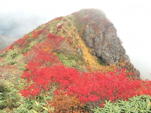 半ば良景を諦め下山を始めたところ、目の前に現れたのは今までに見た事のないような真っ赤ぁ赤ぁな紅葉🍁