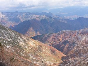南魚沼は紅葉が見頃ですが高い山には雪が⛄
